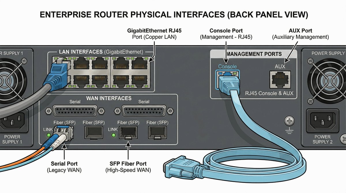 - Interfejsy LAN: Szybkie porty Ethernet służące do łączenia z przełącznikami i stacjami roboczymi.