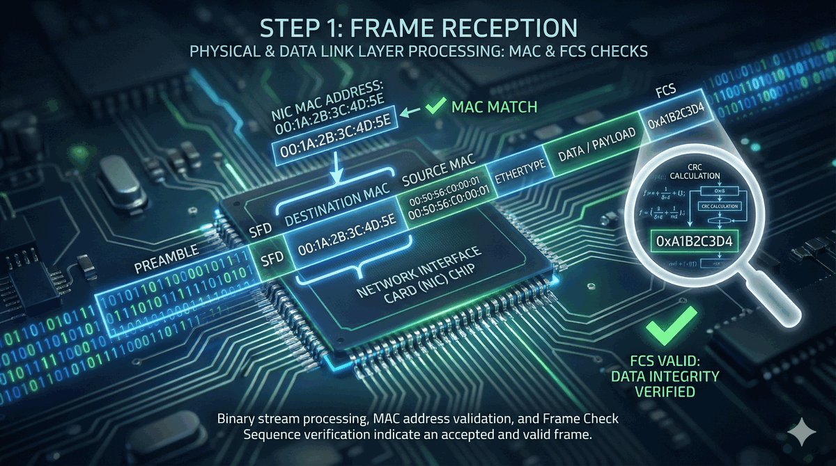 - Sprawdza adres MAC odbiorcy — musi on pasować do adresu routera lub być rozgłoszeniem.