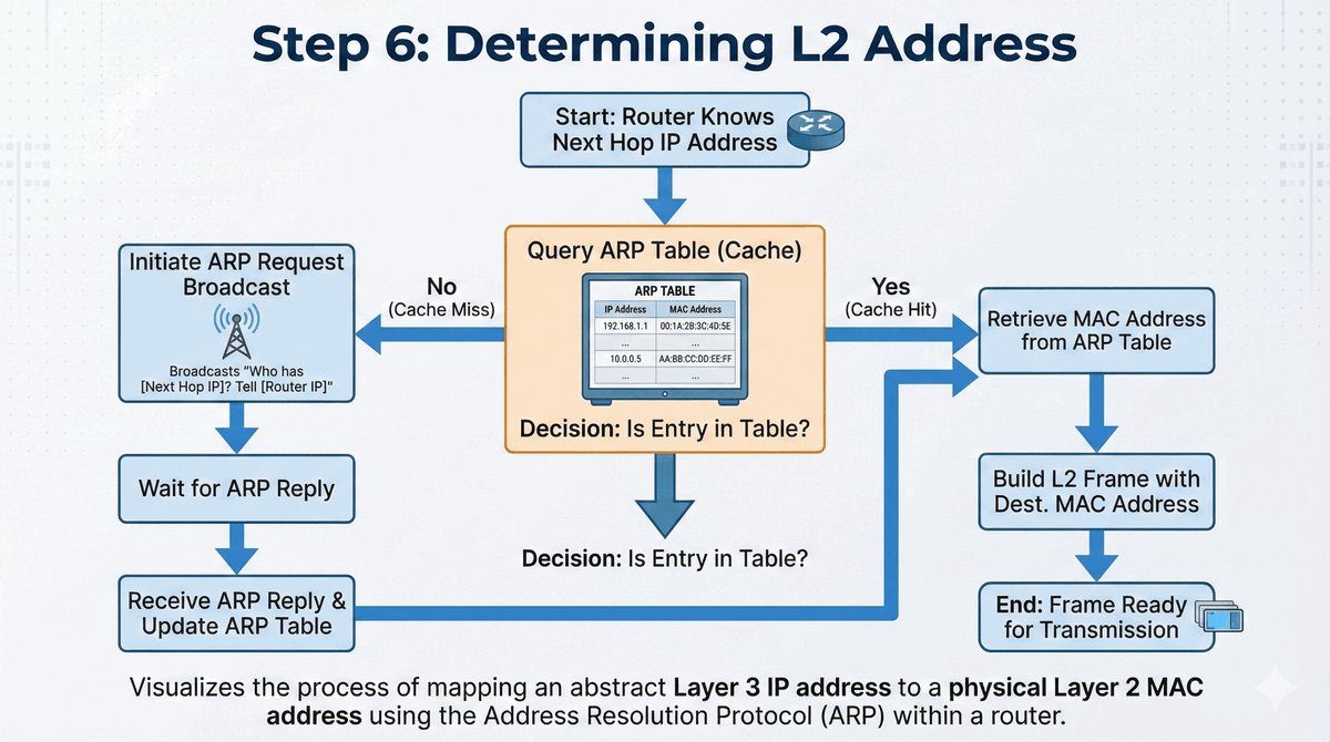 - Router zapisuje to powiązanie w tablicy, aby nie powtarzać pytania przy kolejnych pakietach.