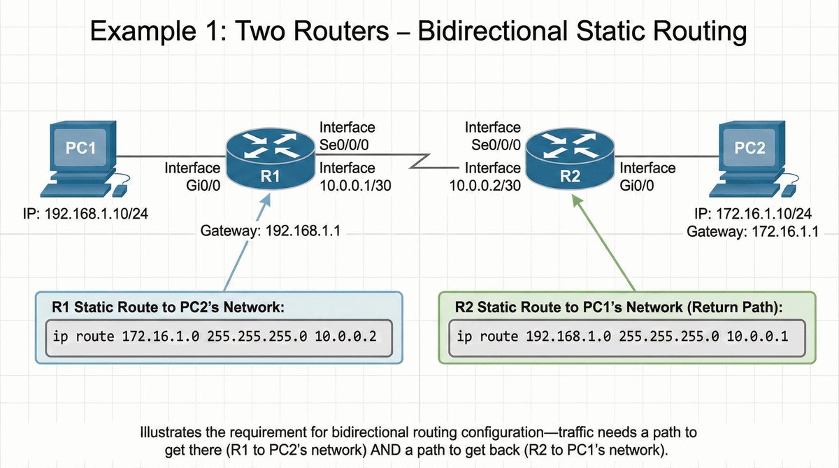- Ważne: Routing musi być dwukierunkowy — Router B musi wiedzieć, jak wrócić do Biura A.
