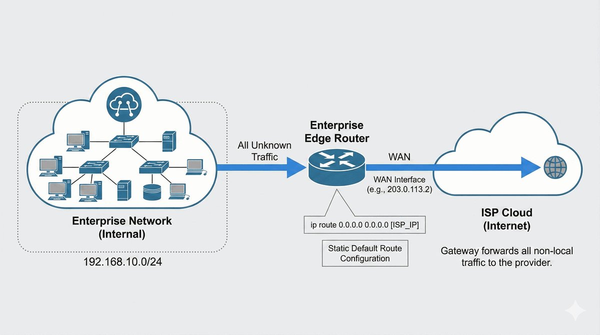 - Definiowanie tras domyślnych dla pakietów kierowanych do Internetu.
