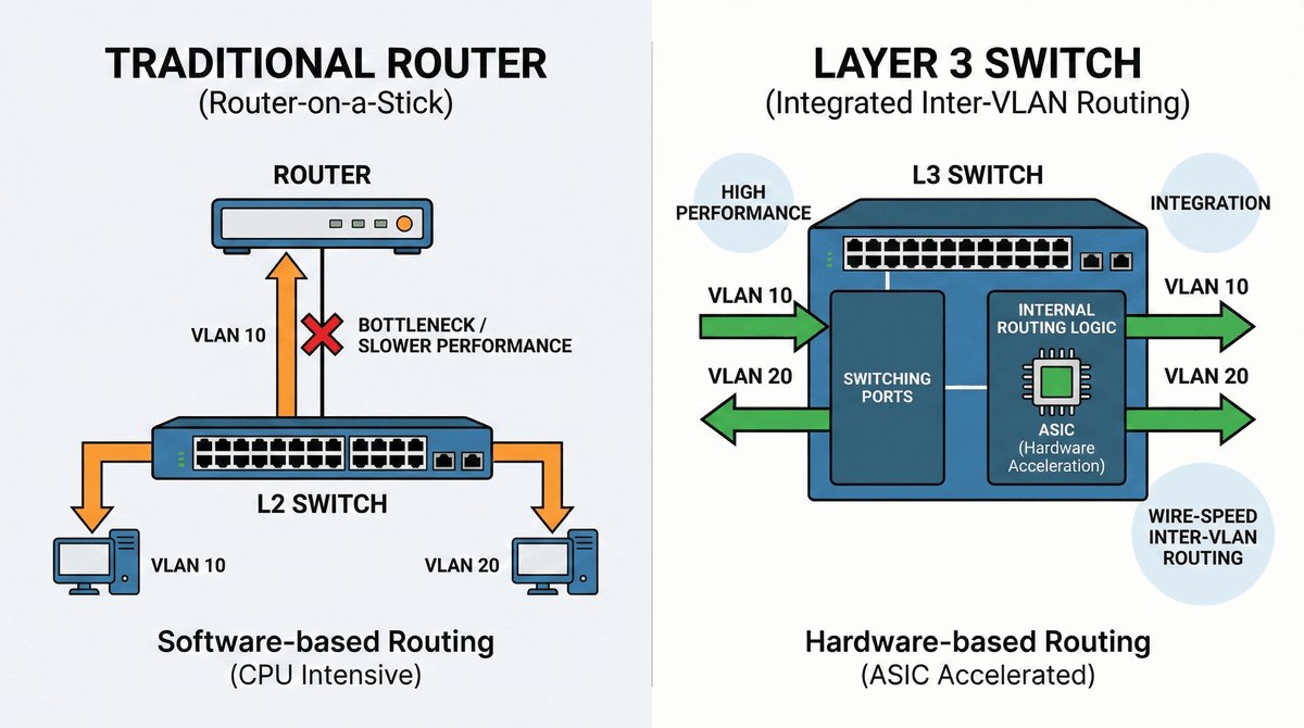 - To standardowe rozwiązanie dla komunikacji między sieciami wirtualnymi (VLAN) wewnątrz biura.
