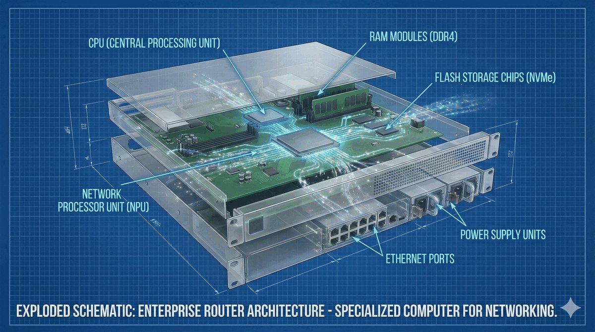 - Współczesny router to de facto potężny komputer o specjalistycznej architekturze.