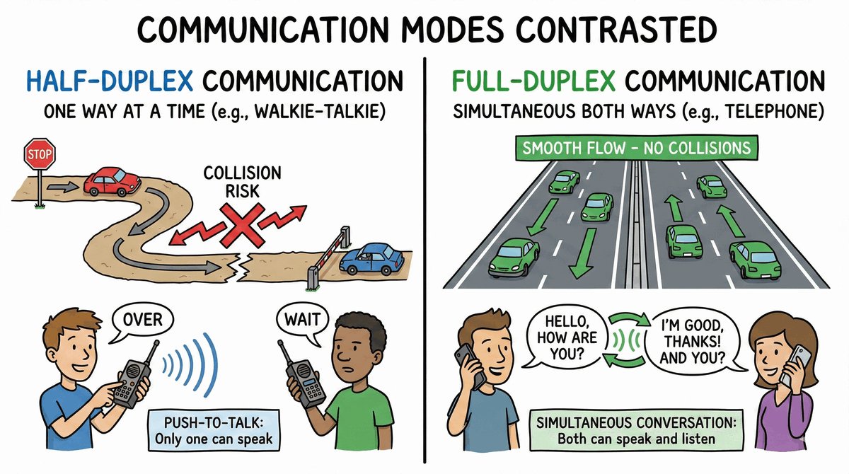 - Gdy dwa urządzenia nadawały jednocześnie, dochodziło do kolizji sygnałów.