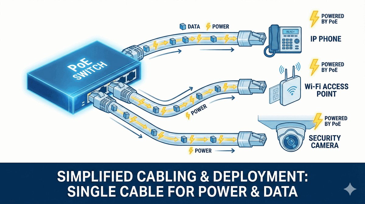 - Często wspierają PoE, aby zasilić kamerę lub telefon bezpośrednio z gniazdka sieciowego.