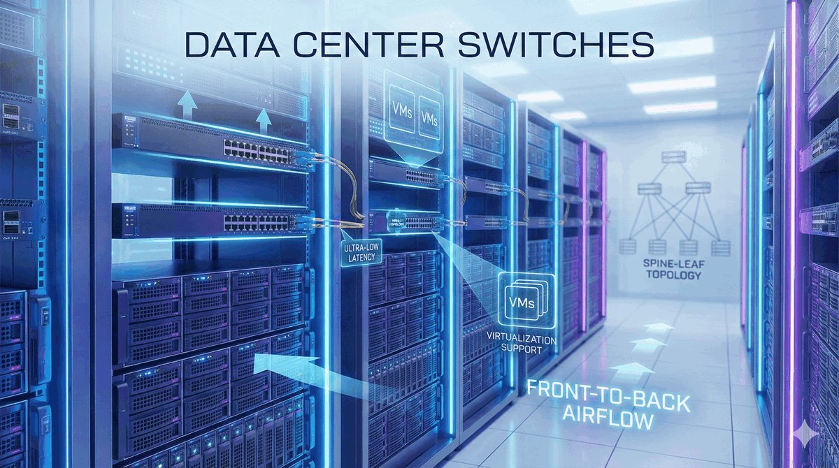 - Często pracują w skalowalnej architekturze Spine-Leaf, zastępującej tradycyjną hierarchię.