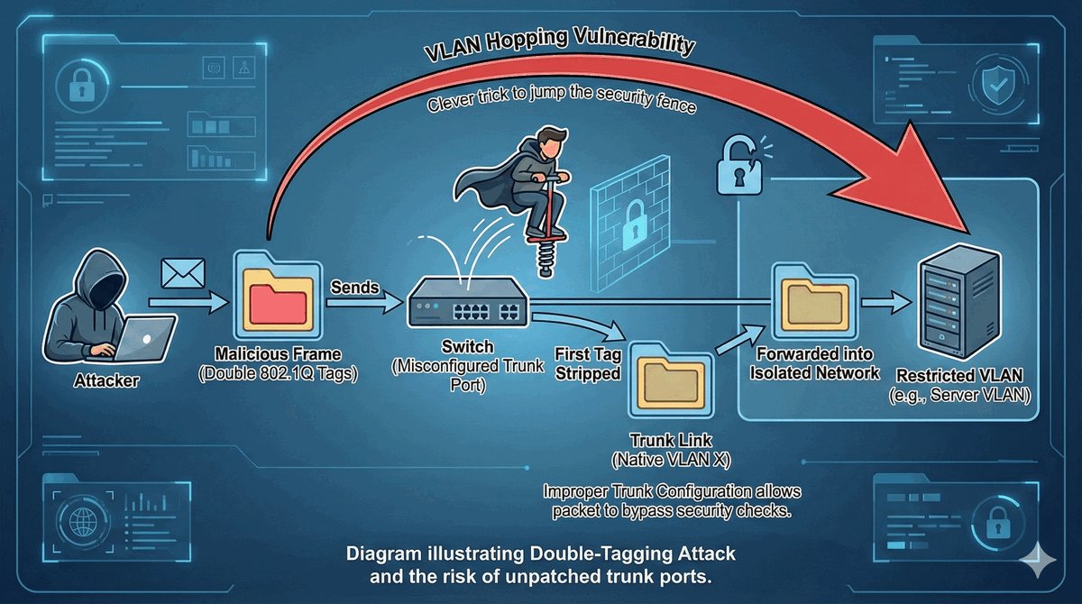 - Technika próby obejścia zabezpieczeń i dostania się do sieci wirtualnej (VLAN), do której nie mamy uprawnień.