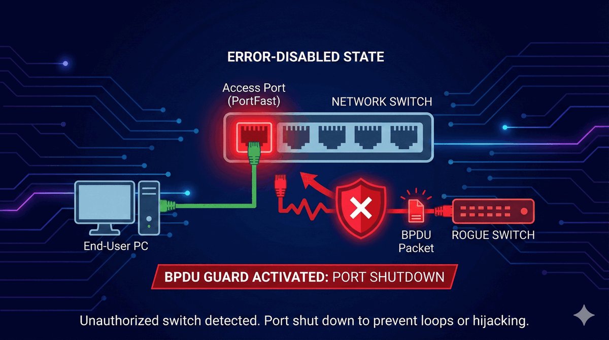 - Zapobiega to powstawaniu niebezpiecznych pętli oraz próbom manipulacji topologią sieci przez niepowołane osoby.