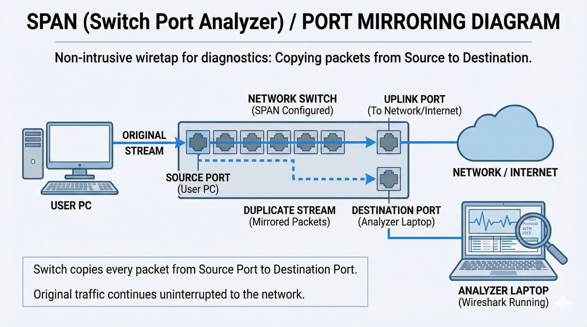 - Wersja zdalna (RSPAN) pozwala przesyłać te dane między różnymi budynkami przez sieć LAN.