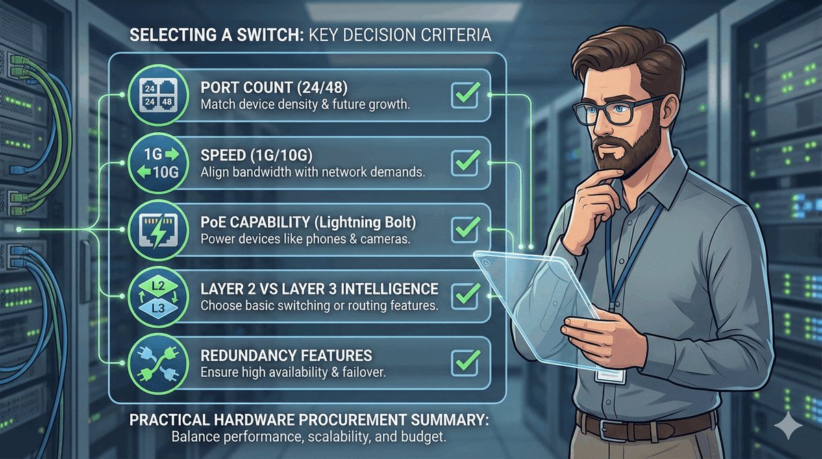- Wymagana liczba oraz docelowa prędkość portów (np. 1 Gbps / 10 Gbps).