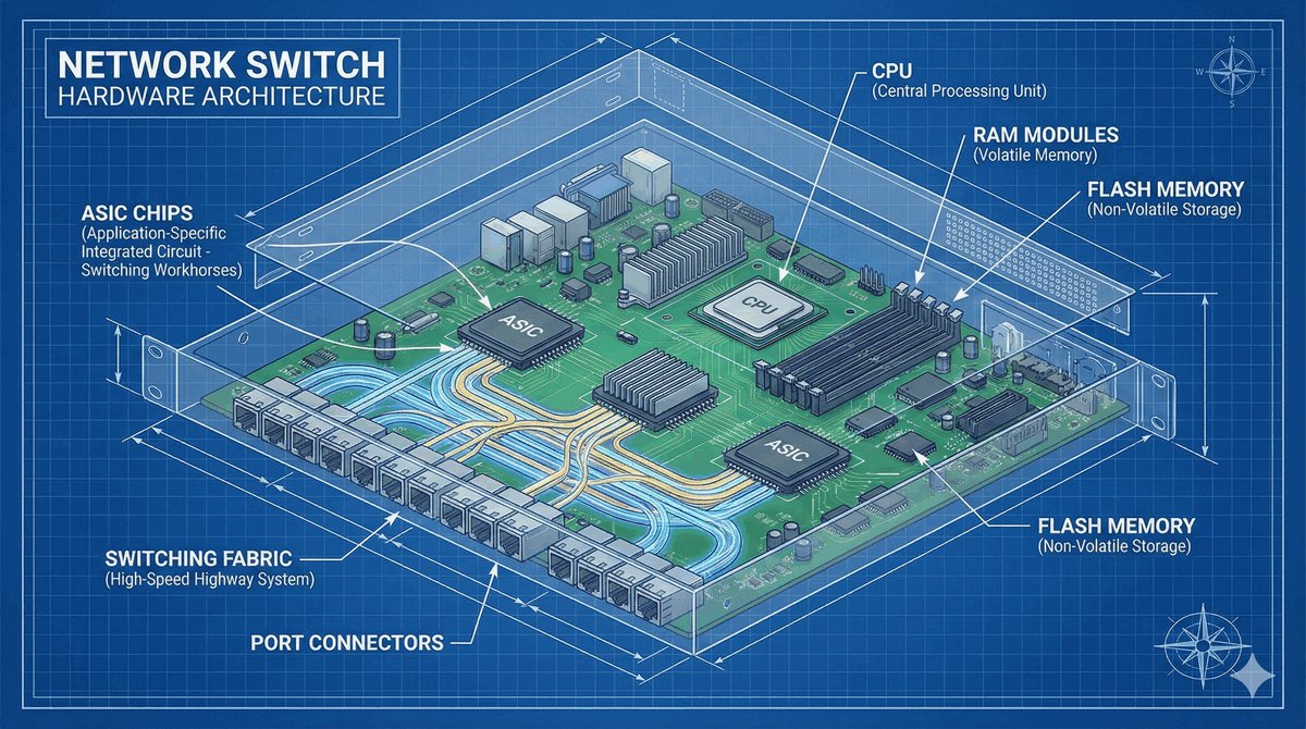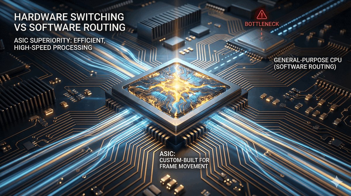 - ASIC to dedykowane układy scalone, odpowiedzialne za rekordową wydajność przełącznika.