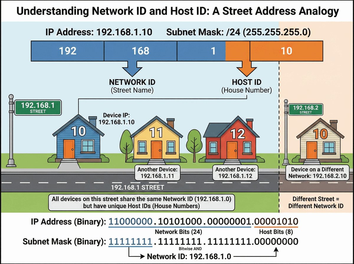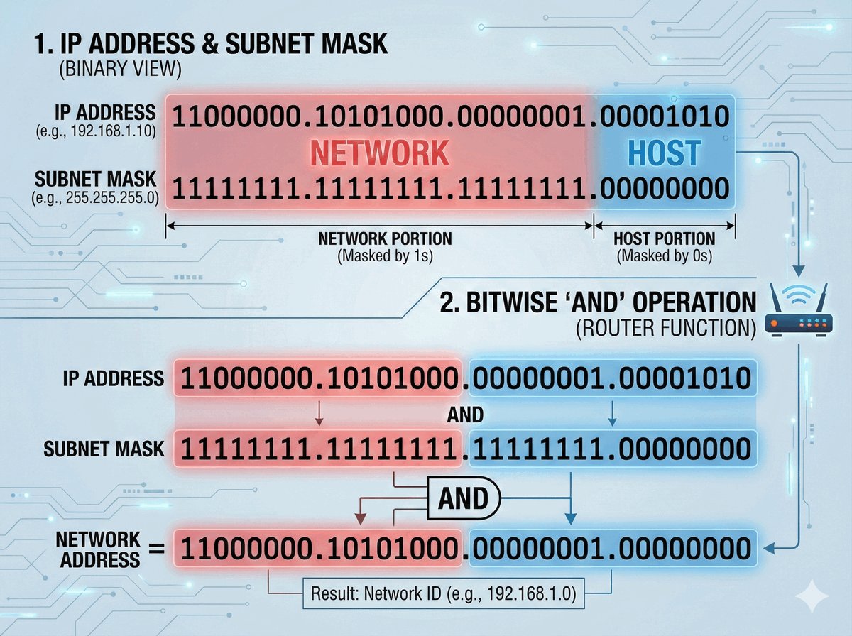 Gdy router otrzymuje pakiet, przeprowadza logiczną operację AND na adresie docelowym i masce. Wynik tej operacji to tzw. Network ID, czyli ścisły adres sieci (zawsze kończący się zerami w części hosta). Jest to nazwa całej grupy urządzeń, pod którą są one znane w wielkim świecie routingu.