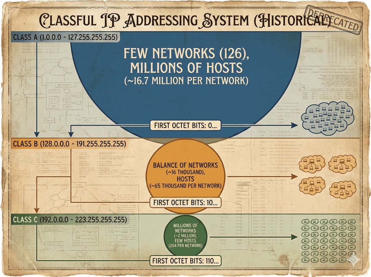 W zamierzchłych czasach początków Internetu adresy przydzielano w sztywnych paczkach zwanych klasami (A, B i C). Klasa A była przeznaczona dla gigantycznych korporacji i rządów — jeden taki przydział dawał aż 16 milionów adresów. Klasa C, najskromniejsza, oferowała tylko 254 adresy, co często okazywało się niewystarczające nawet dla małej uczelni.