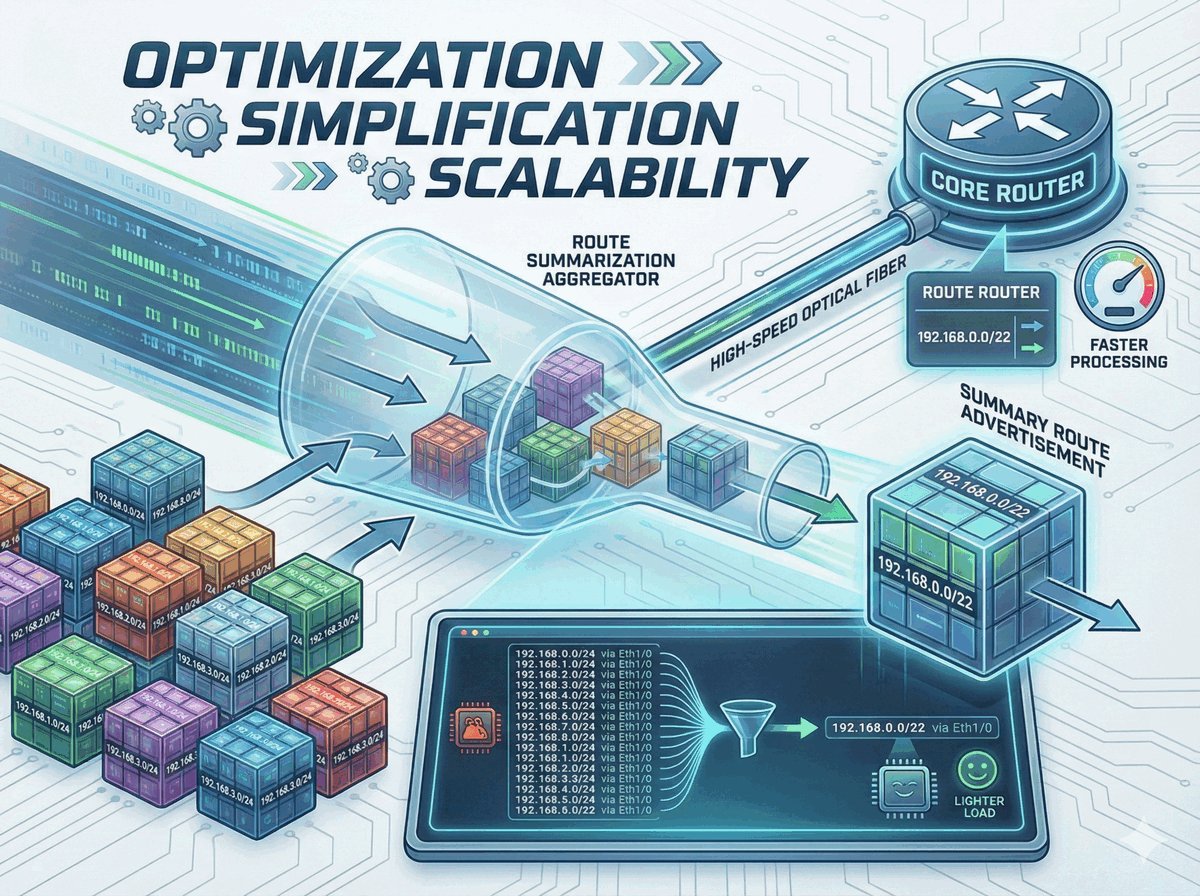 Zamiast mówić: „U mnie są sieci 10.1.0.0, 10.1.1.0, 10.1.2.0 i 10.1.3.0", router mówi: „Wyślij do mnie wszystko, co zaczyna się od 10.1.0.0/22". Zmniejsza to obciążenie procesorów w węzłach sieciowych i sprawia, że drobne awarie w jednym zakątku firmy nie powodują nerwowych zmian w tablicach routingu na drugim końcu świata.