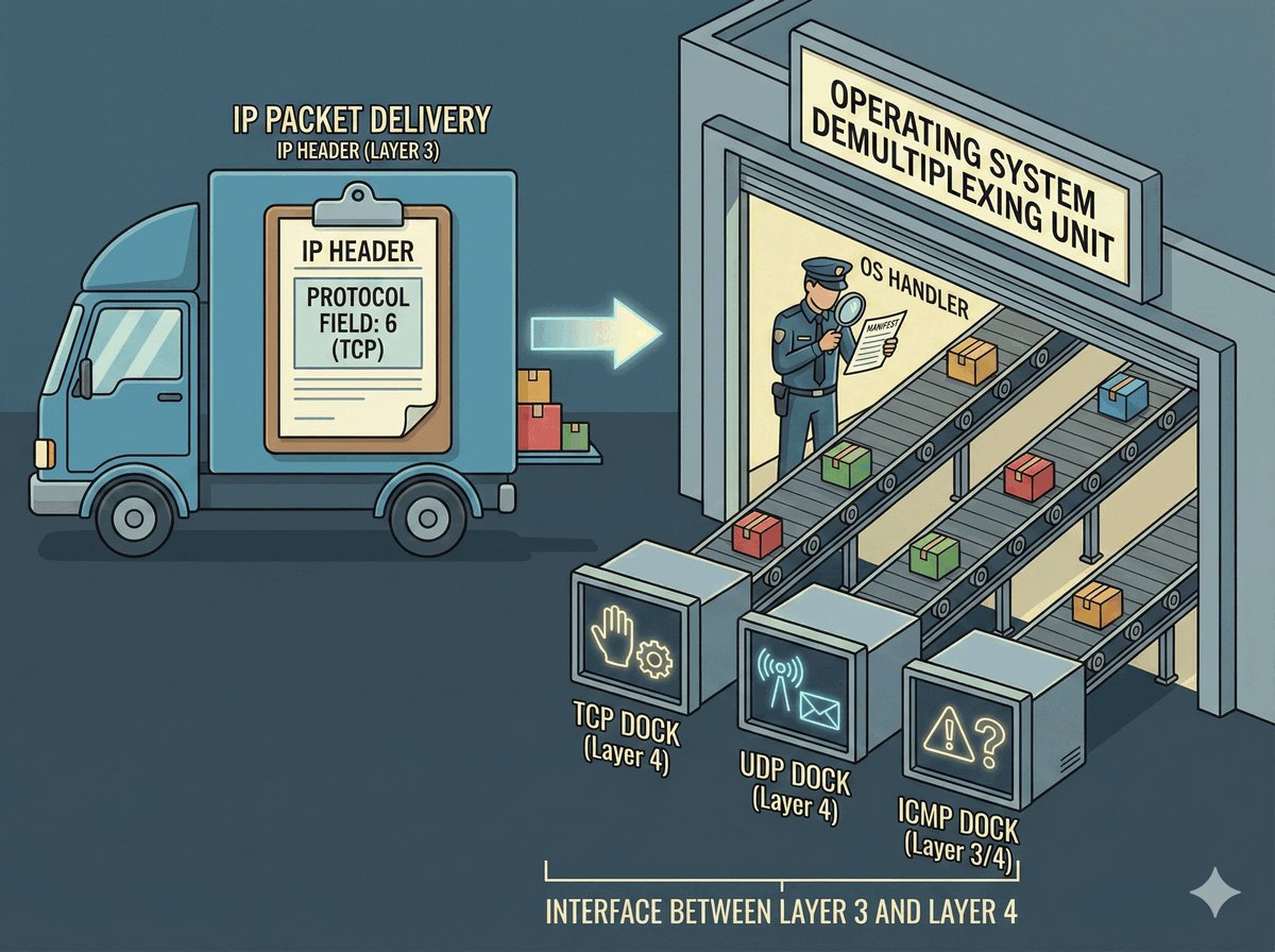 Pakiet IP jest tylko opakowaniem dla innych protokołów. Pole Protocol w nagłówku to specjalny numer, który mówi komputerowi, komu ma oddać wyjęte z koperty dane po ich otrzymaniu. To krytyczny element procesu demultipleksacji.