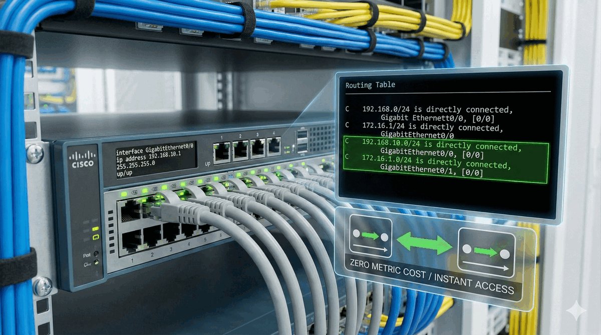 Takie połączenia są uznawane za najbardziej wiarygodne, ponieważ router nie potrzebuje pośredników, aby wysłać do nich dane. Ich metryka (czyli koszt dotarcia) wynosi zawsze 0. To fundament, na którym budujemy całą resztę — bez poprawnie działających sieci bezpośrednich żaden inny protokół routingu nie będzie w stanie nawiązać połączenia ze światem.
