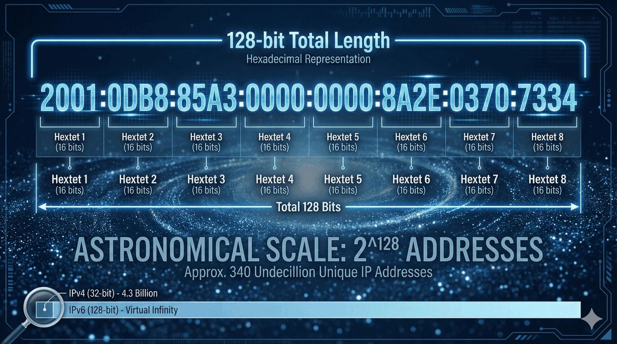 IPv6 nie jest tylko poprawką — to zupełnie nowy fundament. Oferuje on tak kolosalną liczbę adresów (340 undecylionów), że moglibyśmy nadać unikalny adres każdemu atomowi na powierzchni Ziemi. Oprócz ilości, IPv6 upraszcza nagłówki pakietów i eliminuje potrzebę stosowania NAT-u, co sprawia, że komunikacja bezpośrednia stanie się znowu prosta i naturalna.