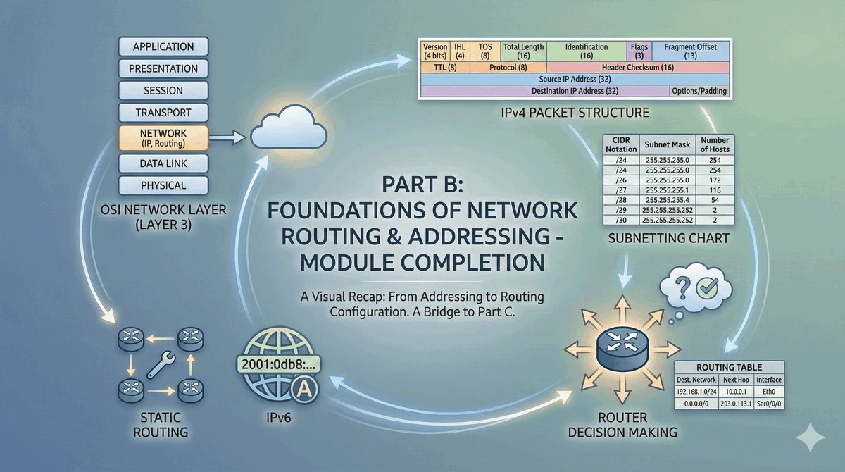 Zakończyliśmy omawianie fundamentów przesyłania danych. Wiemy już, że adres IP to logiczna tożsamość urządzenia, która pozwala na globalną nawigację. Poznaliśmy magię subnettingu, która porządkuje chaos wewnątrz firm, oraz nauczyliśmy się ręcznie budować drogi dla danych za pomocą tras statycznych.