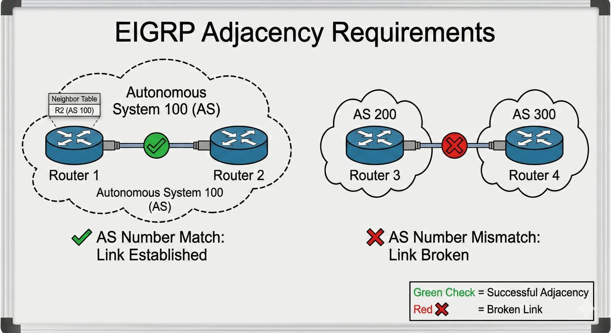 Podobnie jak w OSPF mieliśmy Area, w EIGRP musimy zdefiniować numer AS (Autonomous System). To bardzo ważne: routery nawiążą sąsiedztwo TYLKO wtedy, gdy mają wpisany identyczny numer AS. To zamyka naszą domenę routingu w jednej, spójnej całości.