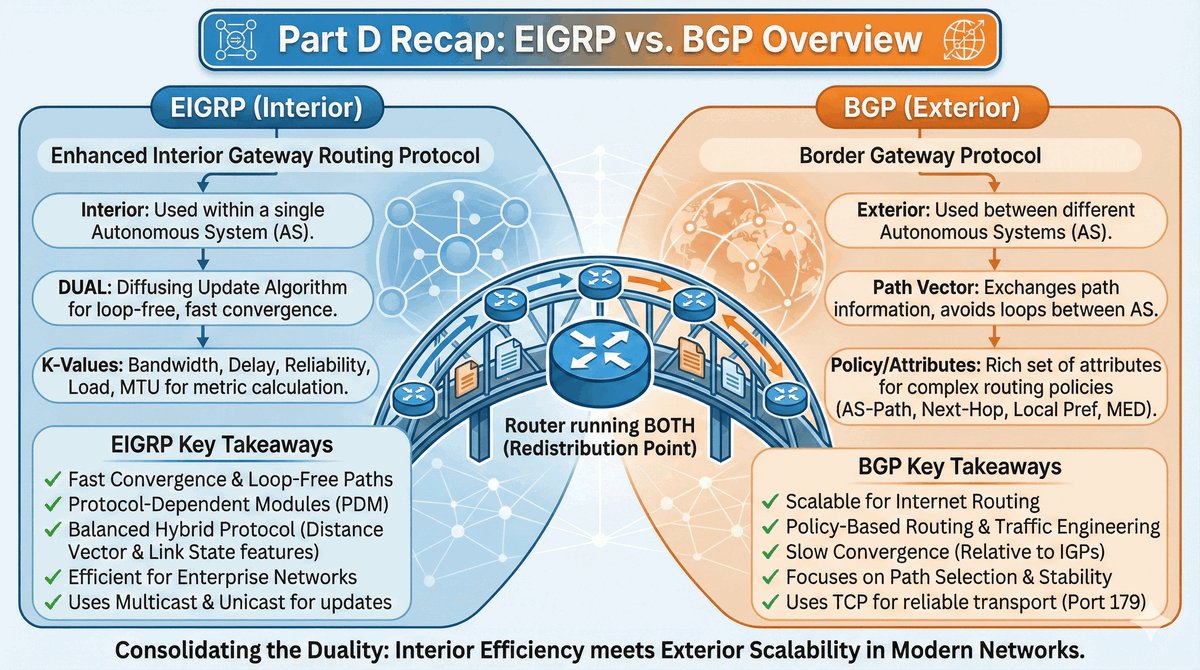 Zakończyliśmy wielką podróż po protokołach routingu. Wiemy już, jak działa szybkie EIGRP wewnątrz firmy i jak gigantyczne BGP zarządza ruchem między kontynentami. Rozumiemy znaczenie atrybutów, wpływ Systemów Autonomicznych i wagę bezpieczeństwa cyfrowego.